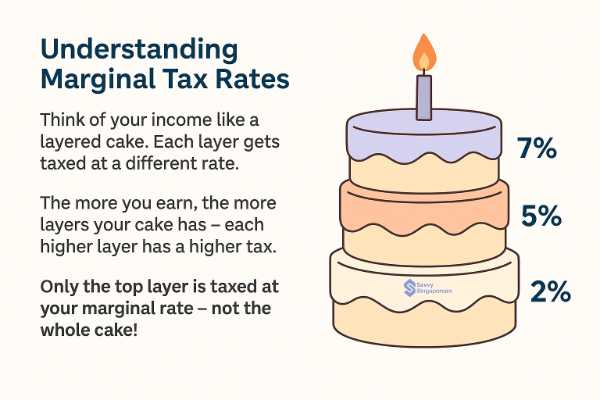 Marginal tax rate, explained: Singapore uses a progressive tax system with brackets. Your marginal tax rate is simply the tax rate on your next dollar of income – essentially, the rate of the highest bracket your income reaches. For example, if part of your income falls in the 7% tax bracket, your marginal rate is 7%. If your income is high enough that your top portion is taxed at 18%, then 18% is your marginal rate. It’s the rate applied to the last dollar you earned.